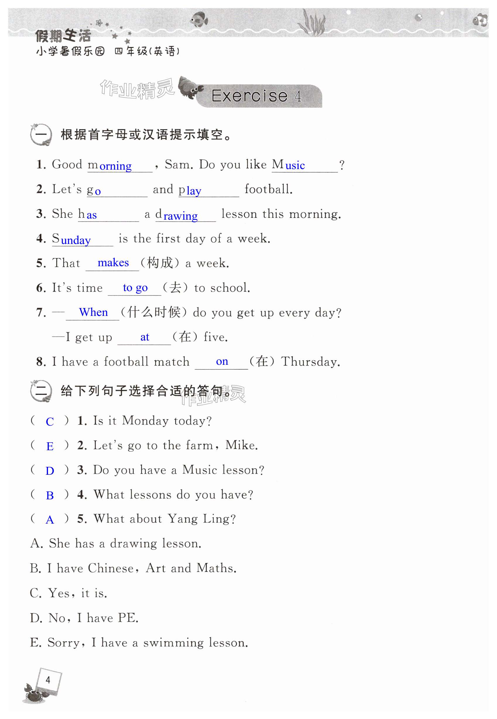 注:目前有些书本章节名称可能整理的还不是很完善,但都是按照顺序排列的,请同学们按照顺序仔细查找。练习册 2025年假期生活小学暑假乐园四年级英语人教版 答案主要是用来给同学们做完题方便对答案用的,请勿直接抄袭。