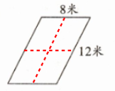 如图是一块平行四边形菜地,现在要在菜地里修几条水渠,使菜地平均分成四个形状相同的小平行四边形,怎样分可使水渠总长度最短?在图上画出来,并算一算水渠的总长度。