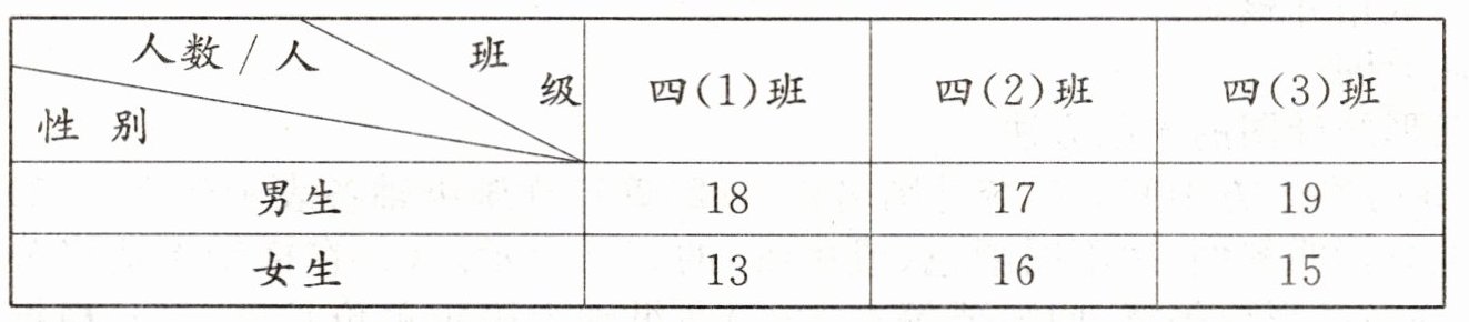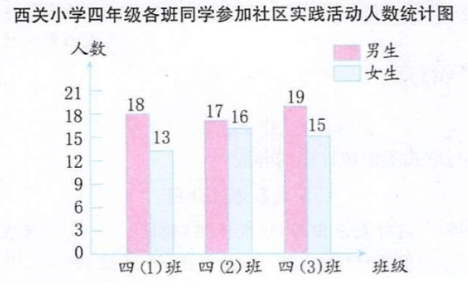 下面是西关小学四年级各班同学参加社区实践活动人数统计表。