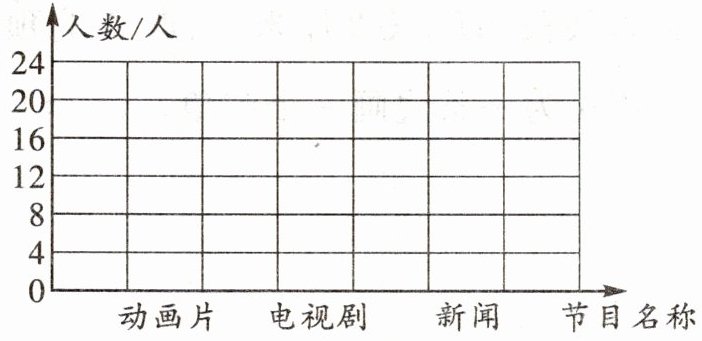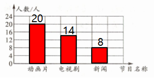 5. 三(1)班同学喜爱看的电视节目情况如下,喜爱看动画片的有20人,喜爱看电视剧的人数比看动画片的人数少6人,喜欢看新闻节目的有8人。(8分)