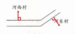 3. 从河西村和河东村各修一条小路与公路连接,应该怎样修离公路最近?请在图中画出来。(4分)