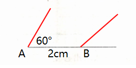1. 请在这条直线上截取线段$AB$,长2厘米,以点$A$为顶点,$AB$为一条边画一个$60^{\circ}$的角;以点$B$为顶点,$BA$为一条边画一个钝角。(4分)