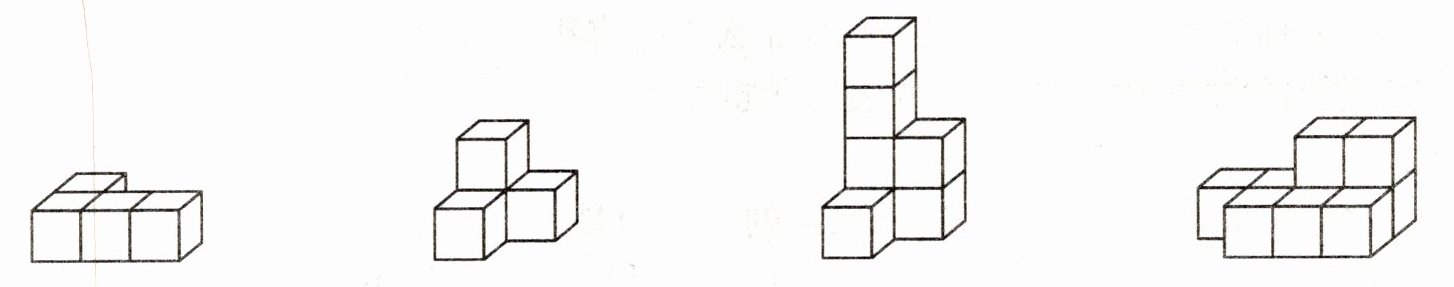 1. 组成下面各图的每个小正方体的体积为$1cm^{3}$,把每个图形的体积填在下面的横线上。