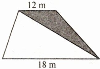 解:设梯形的高为 $ x $ 米。$ (12 + 18)x = 150 × 2 $ 解得 $ x = 10 $ $ S = \frac { 1 } { 2 } × 12 × 10 = $