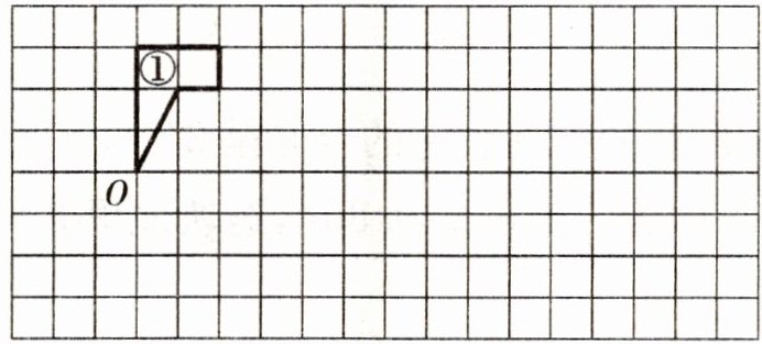 1.在方格纸上先画出图形①向右平移8格得到的图形②,再画出图形①绕点O沿顺时针方向旋转$90^{\circ }$得到的图形③。(4分)