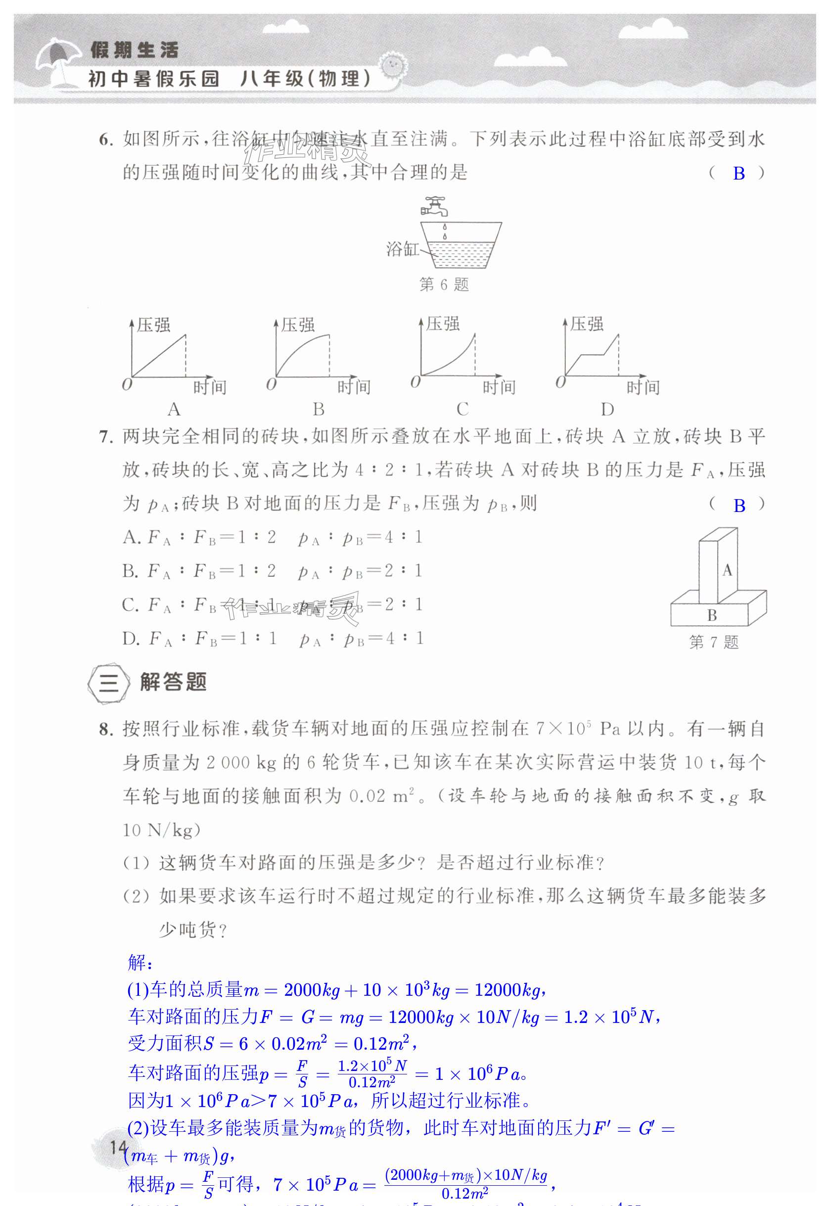 注:目前有些书本章节名称可能整理的还不是很完善,但都是按照顺序排列的,请同学们按照顺序仔细查找。练习册 2025年假期生活初中暑假乐园八年级物理人教版 答案主要是用来给同学们做完题方便对答案用的,请勿直接抄袭。