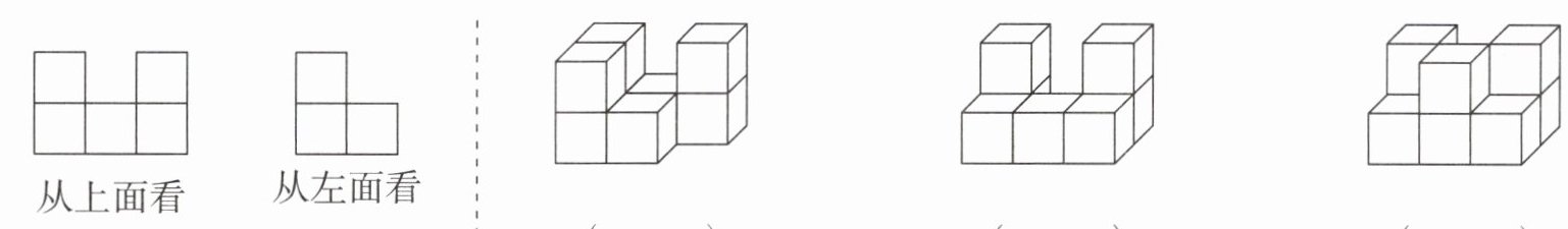 用五个小正方体拼成立体图形,从前面、左面、上面看到的图形如图所示,这个立体图形是图(