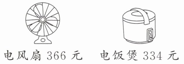 3. 王阿姨带着800元钱去商场买了一个电风扇和一个电饭煲,还剩下多少元?