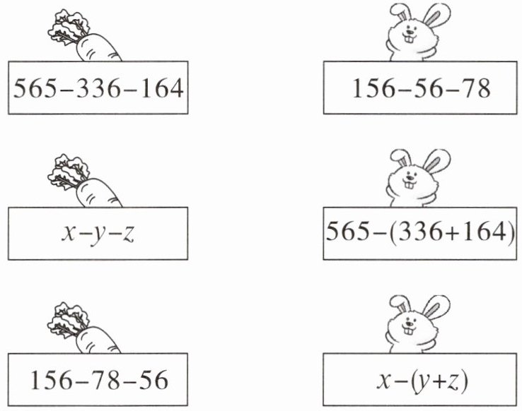 2. 小白兔吃萝卜。(把两个相等的算式连起来)
