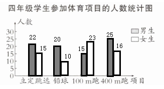 四年级学生参加体育项目的人数情况如下表(单位:人)。