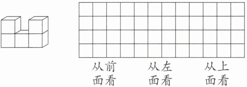 四、在方格纸上分别画出从前面、左面和上面看到的图形。(9分)