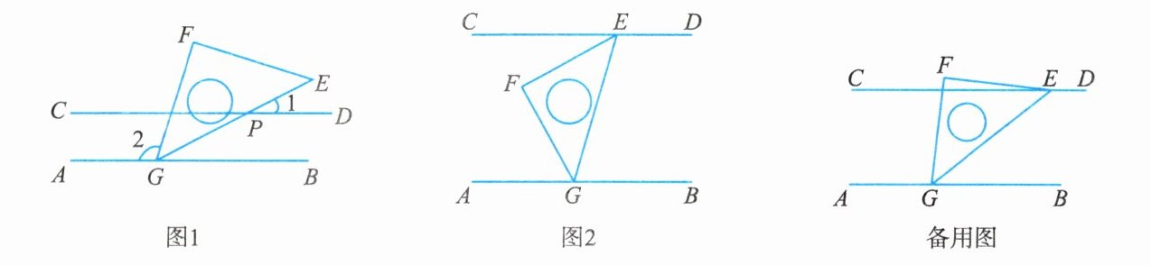 (1)如图1所示,在$GE$边上任取一点$P$(不同于点$G$,$E$),过点$P$作$CD// AB$。若$∠1=27^{\circ}$,求$∠2$的度数;