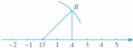 5. 小明学了在数轴上画出表示无理数的点的方法后,进行练习:首先画数轴,原点为 O,在数轴上找到表示数 2 的点 A,然后过点 A 作$AB⊥OA$,使$AB=2$(如图所示).以 O 为圆心,OB 长为半径作弧,交数轴正半轴于点 P,则点 P 所表示的数介于(