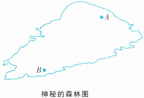 面对这段文字,他只知道森林里有宝,但无法寻找。于是,他继续想方设法查看其他资料,好不容易发现了那张与描述藏宝地点相关的神秘的森林图,可是图上只标出了A,B两点的位置,如右图所示。
