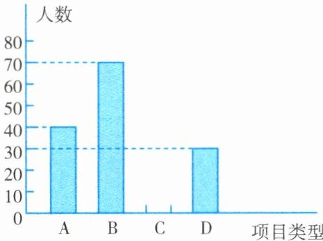 8. 2023年全国青少年定向教育竞赛在气候宜人的云南昆明开赛,本次比赛历时2天,设百米定向、专线定向、短距离赛和短距离接力赛4个项目,共有36所学校和单位的546名中小学生参赛.某中学为了解学生对4个项目(A.百米定向,B.专线定向,C.短距离赛,D.短距离接力赛)的喜欢情况,在全校范围内随机抽取若干名学生进行问卷调查(每个被调查的学生必须选择而且只能在这4个项目中选择一项),将数据进行整理并绘制成下面两幅不完整的统计图.