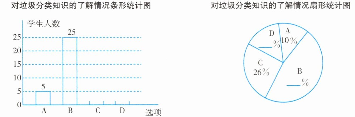 (4)由于不了解垃圾分类的同学占比为 14%,建议该校七年级各班开展垃圾分类主题班会,强化这类同学对垃圾分类知识的了解和掌握.(合理即可)