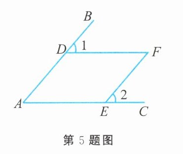 5. 如图所示,$AC// DF$,$AB// EF$,点$D$,$E$分别在$AB$,$AC$上.若$\angle 2 = 50^{\circ}$,则$\angle 1$的大小是(