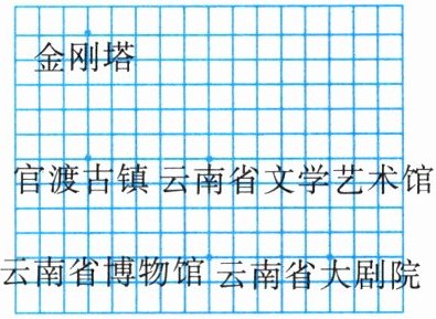 3. 官渡古镇是云南特色景观旅游景点。小兰从昆明市区地图观看到古镇周边部分景点分布如图所示。若云南省文学艺术馆的坐标为(2,1),云南省大剧院的坐标为(7,-3),则金刚塔的坐标为(