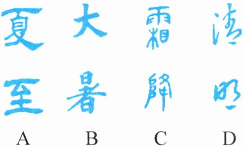 )A.隶书“夏至”二字,横长竖短,敦厚大气。