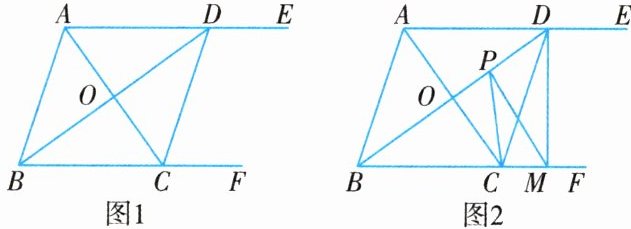 (2)如图 2 所示,$CD = 5$,$AC = 6$,$DM⊥BF$于点 M,已知点 P 是 BD 上一动点,连接 PC,PM. 求$△PCM$周长的最小值.