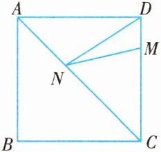 7. 如图所示,正方形 ABCD 的边长为 8,点 M 在 DC 上,且$DM = 2$,N 是 AC 上一动点,则$DN + MN$的最小值为(
