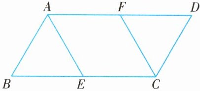 $ \therefore \triangle A B E $,$ \triangle A E F $,$ \triangle C E F $,$ \triangle C D F $ 是边长等于 AB 的等边三角形。