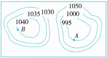 4. 如图所示是我国某地的等高线图,若把同一物体分别放在A点和B点,则此物体的重力势能(
