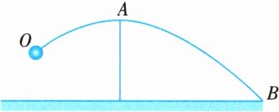 5. 掷实心球是中考体育项目之一。如图所示是某同学掷出的实心球的运动轨迹,O点是实心球刚离开手的位置,A点是实心球运动到最高点的位置,B点是实心球落地前瞬间的位置,不计空气阻力。下列说法正确的是(