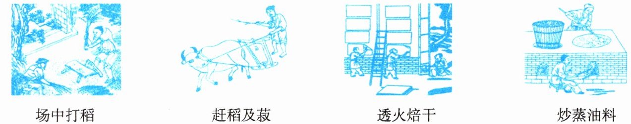 )A. “场中打稻”中通过摔打的方法能将稻粒从稻秆上打落是因为稻粒有弹性