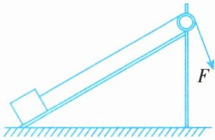 5. 为了将一物块送到高处,小杰用木板和滑轮搭建了如图所示的装置。用力F拉动绳端,物块沿斜面匀速向上运动。下列说法正确的是(