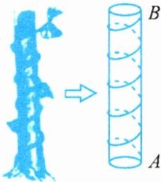 10. 我国古代有这样一道数学问题:“枯木一根直立地上,高二丈,周三尺,有葛藤自根缠绕而上,五周而达其顶,问葛藤之长几何?”题意:如图所示,把枯木看作一个圆柱体,因一丈是10尺,则该圆柱的高为20尺,底面周长为3尺,有葛藤自点$A$处缠绕而上,绕五周后其末端恰好到达点$B$处,则问题中葛藤的最短长度是