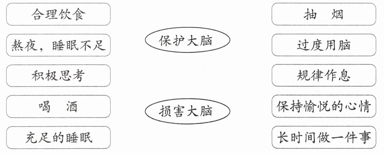 下列哪些行为可以保护我们的大脑? 哪些行为会损害我们的大脑? 请你用线连接起来。