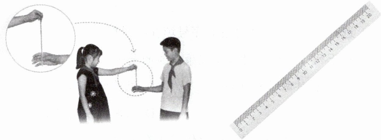 1. 两人一组,一人垂直拿住尺子数字大的一端,然后放手,另一人在下面抓,并把游戏的结果填写在下表中。
