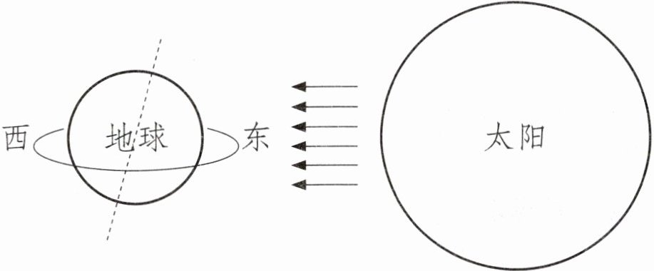 2. 用阴影画出上图中地球处于黑夜的地区。