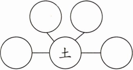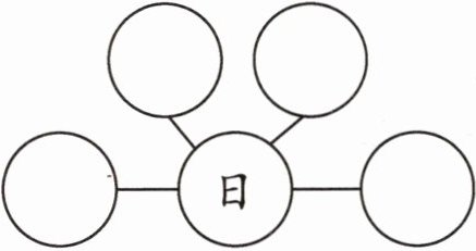 二、给下面的部件再加不同的部件,组成新字,写在圆圈内。