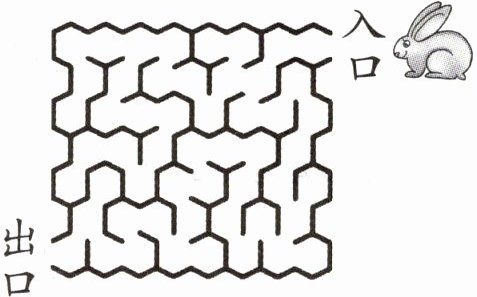 小兔想要回家,必须要经过这个迷宫。请从右上角的入口处进入迷宫,走到左下角的出口处,尽快为小兔找到回家的路。