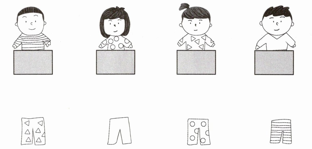请根据衣服的图案为布娃娃选择合适的裤子。