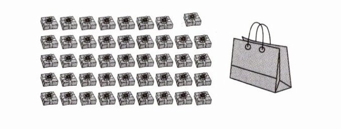 44 - 8 - 8 - 8 - 8 - 8 = 4 (个) 能装满 5 袋。