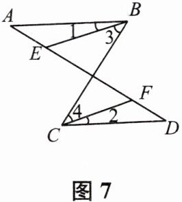 9. 如图 7,已知$∠1=∠2,∠A=∠D$,则下列推理正确的是 (