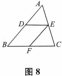 10. 如图 8,已知$DE// BC,EF// AB$,则图中和$∠B$相等的角(不包括$∠B$)有 (