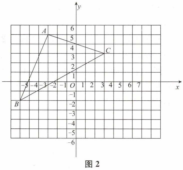 10. 如图2,将三角形$ABC$向右平移3个单位长度,再向下平移3个单位长度,得到对应的三角形$A_{1}B_{1}C_{1}$.请画出平移后的三角形$A_{1}B_{1}C_{1}$,并写出点$A_{1},B_{1},C_{1}$的坐标.
