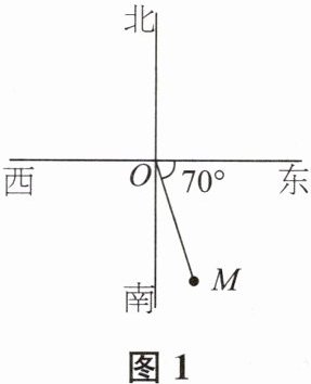 2. 如图 1,一轮船在 M 处,与灯塔 O 处相距80 km,用方向和距离描述灯塔 O 相对于轮船 M 的位置,下列正确的是 (