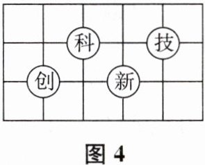 10. 为培养青少年的科学态度和科学思维,某校创建了“科技创新”社团.小红将“科”“技”“创”“新”写在如图4所示的方格纸中,若建立平面直角坐标系,使“创”“新”的坐标分别为$(-2,0)$,$(0,0)$,则“科”所在的象限为(