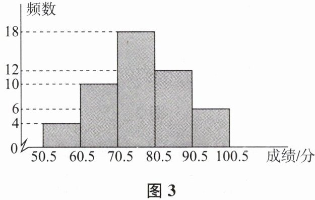 7. 某次体能测试中成绩(得分为整数)在90分以上为优秀,学校随机抽取了这次测试中部分同学的成绩,制成如图3所示的频数分布直方图,根据图示信息,下列描述不正确的是(