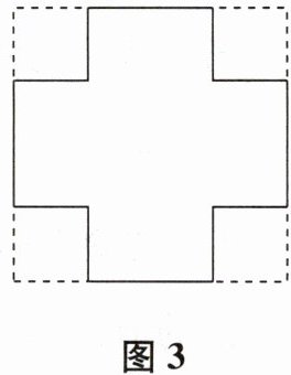 16. 如图 3,从一张面积为 $ 80 \mathrm { cm } ^ { 2 } $ 的正方形纸板的四个角上各剪掉一个面积为 $ 5 \mathrm { cm } ^ { 2 } $ 的小正方形,将剩余部分制成一个无盖的长方体盒子。