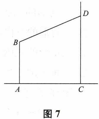 13. 某医院为了方便病人进出,将门诊大厅的门改为自动感应门,感应门上方装有一个最大感应距离为 2.6 米的感应器 $ D $. 如图 7,一个身高为 1.6 米的病人 $ AB $ 走到离感应门 2.4 米处时,感应门刚好自动打开,请求出感应器离地面的高度 $ CD $.