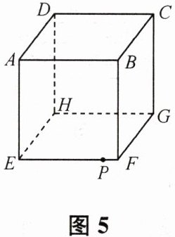 9. 如图 5 是一个棱长为 60 cm 的立方体 $ ABCD - EFGH $,一只甲虫在 $ EF $ 边上,且距 $ F $ 点 10 cm 的 $ P $ 处,它要爬到顶点 $ D $,需要爬行的最短距离是 ( )