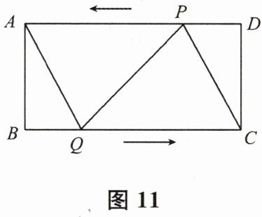 13. 如图11,在矩形ABCD中,AB= 4cm,BC= 8cm,点P从点D出发向点A运动,运动到点A即停止;同时点Q从点B出发向点C运动,运动到点C即停止.点P,Q运动的速度都是1cm/s,连接PQ,AQ,CP,设点P,Q运动的时间为t(s).