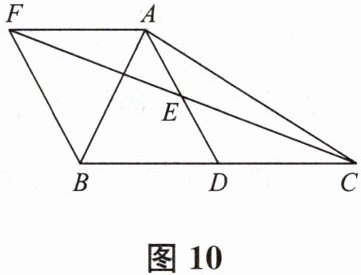 12. 如图10,在△ABC中,D是BC的中点,E是AD的中点,过点A作AF//BC,AF与CE的延长线交于点F,连接BF.
