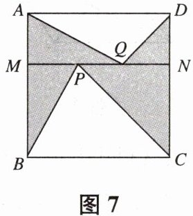 9. 如图7,正方形ABCD的边长为4,MN//BC,分别交AB,CD于点M,N,在MN上任取两点P,Q,那么图中阴影部分的面积是______.